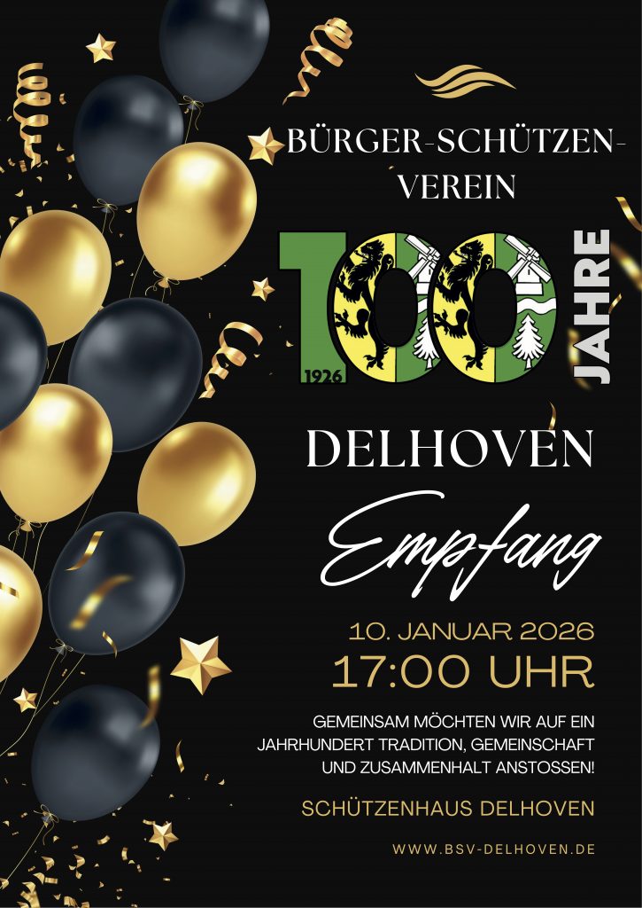 Unser Verein, der Bürger-Schützen-Verein Delhoven 1926 e.V., feiert sein 100-jähriges Bestehen. Dieses außergewöhnliche Jubiläum möchten wir gerne gemeinsam mit euch